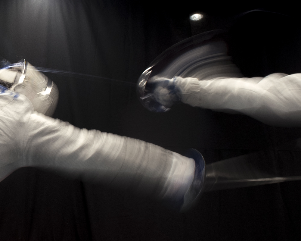 The two fencers had been warming up together in preparation for Arnold all morning until rumors of his sudden arrival reached downstairs, causing them to drop everything, detach from the fencing chairs anchored to the floor and ride the elevators to the main venue.